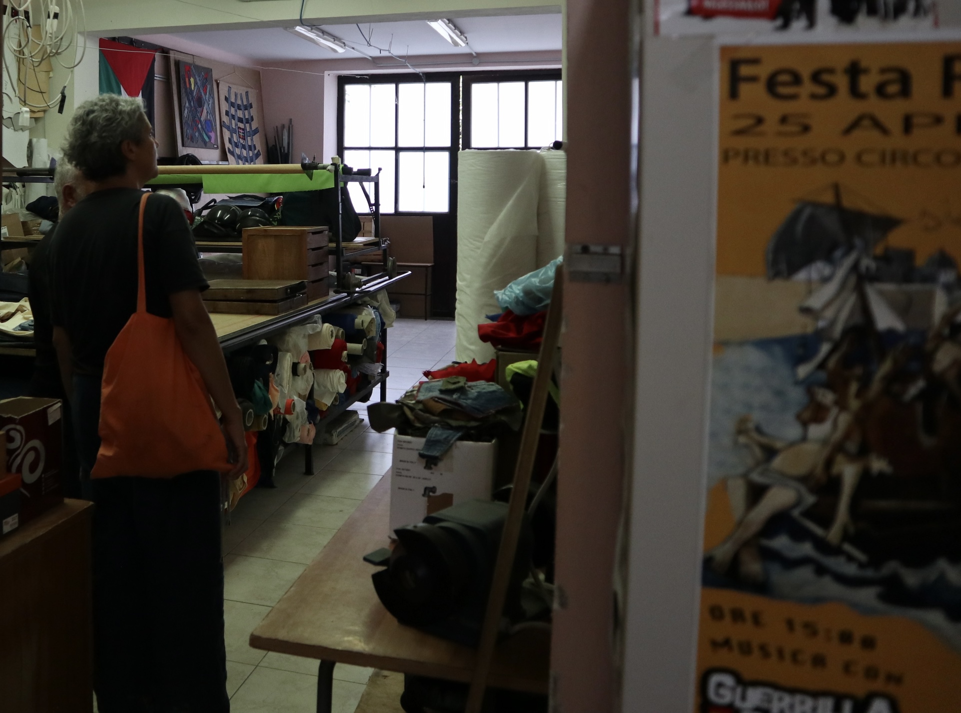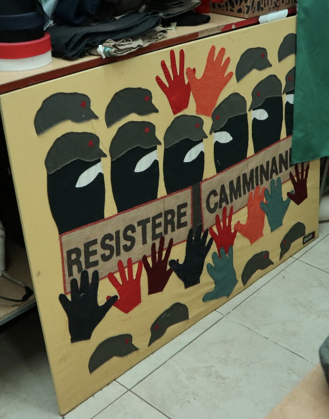 Alla sartoria sociale mi accoglie Mimmo, che mi racconta il lavoro che dà vita a borse, astucci, cappelli. Ogni tessuto recuperato, ogni cucitura, è gesto di dignità, autonomia, rigenerazione. Qui il lavoro non è prestazione, ma riscatto; non è merce, ma cura. È tempo condiviso, artigianato lento, costruito fuori dalle logiche del profitto e dentro quelle del mutualismo.