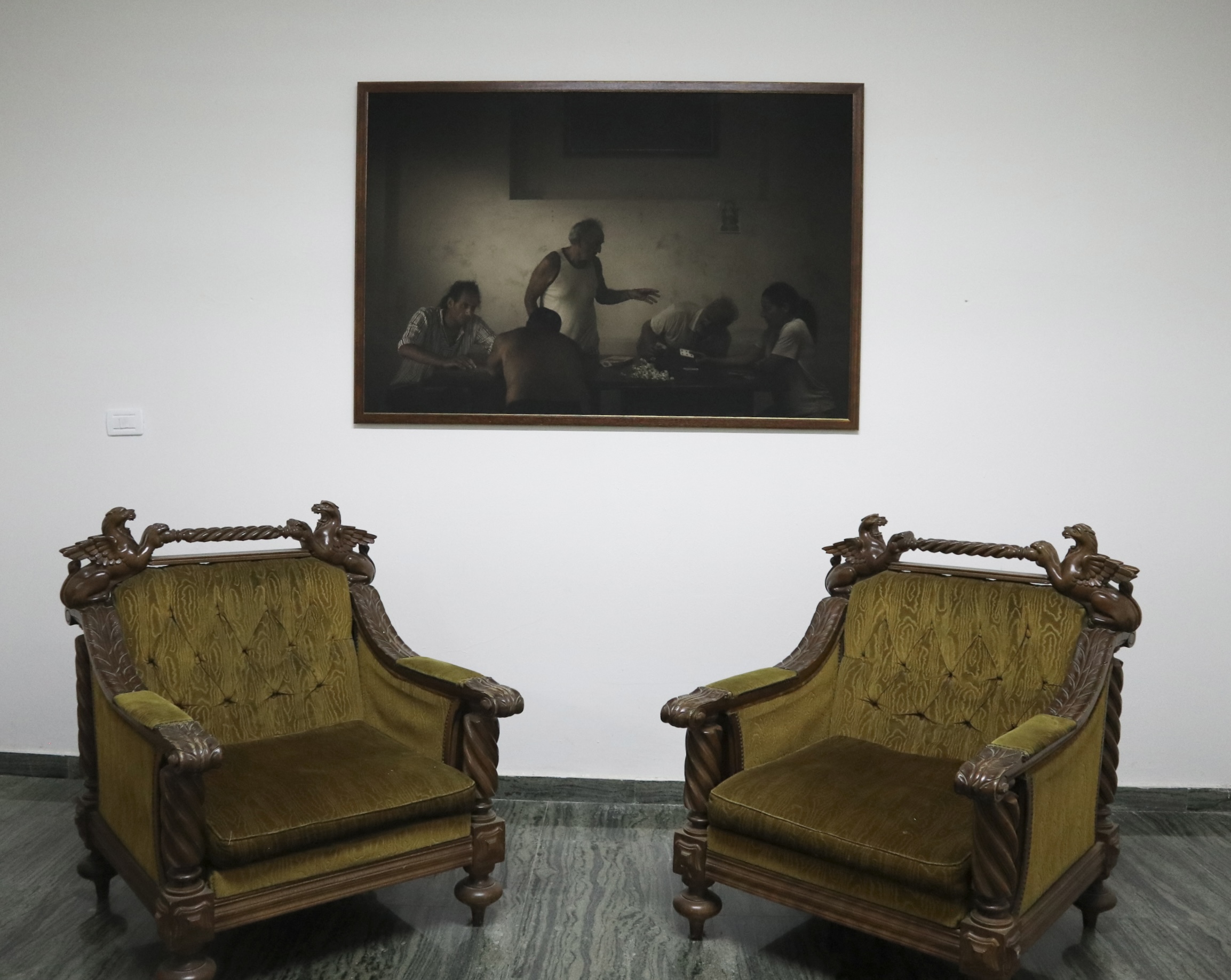Ci muoviamo nelle stanze della villa, partendo dall’alto, dove la biblioteca custodisce decine di faldoni dei processi e la sentenza Olimpia. Antonella e Silvia mi guidano in un cammino fisico e simbolico che nel tempo ha trasformato quei muri: da luogo del potere mafioso a luogo di liberazione.