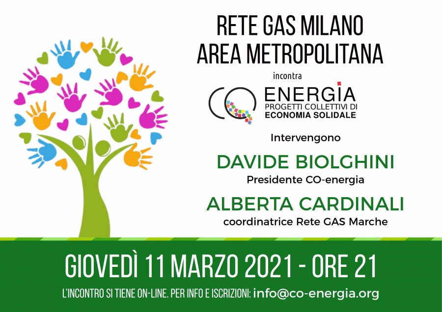 Si terrà giovedì 11 marzo, alle ore 21, la presentazione di CO-energia a Rete GAS Milano Area Metropolitana.